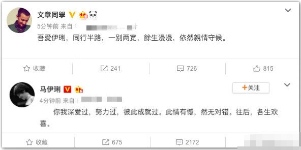7月28日,马伊琍和文章官宣了他们正式离婚的消息。